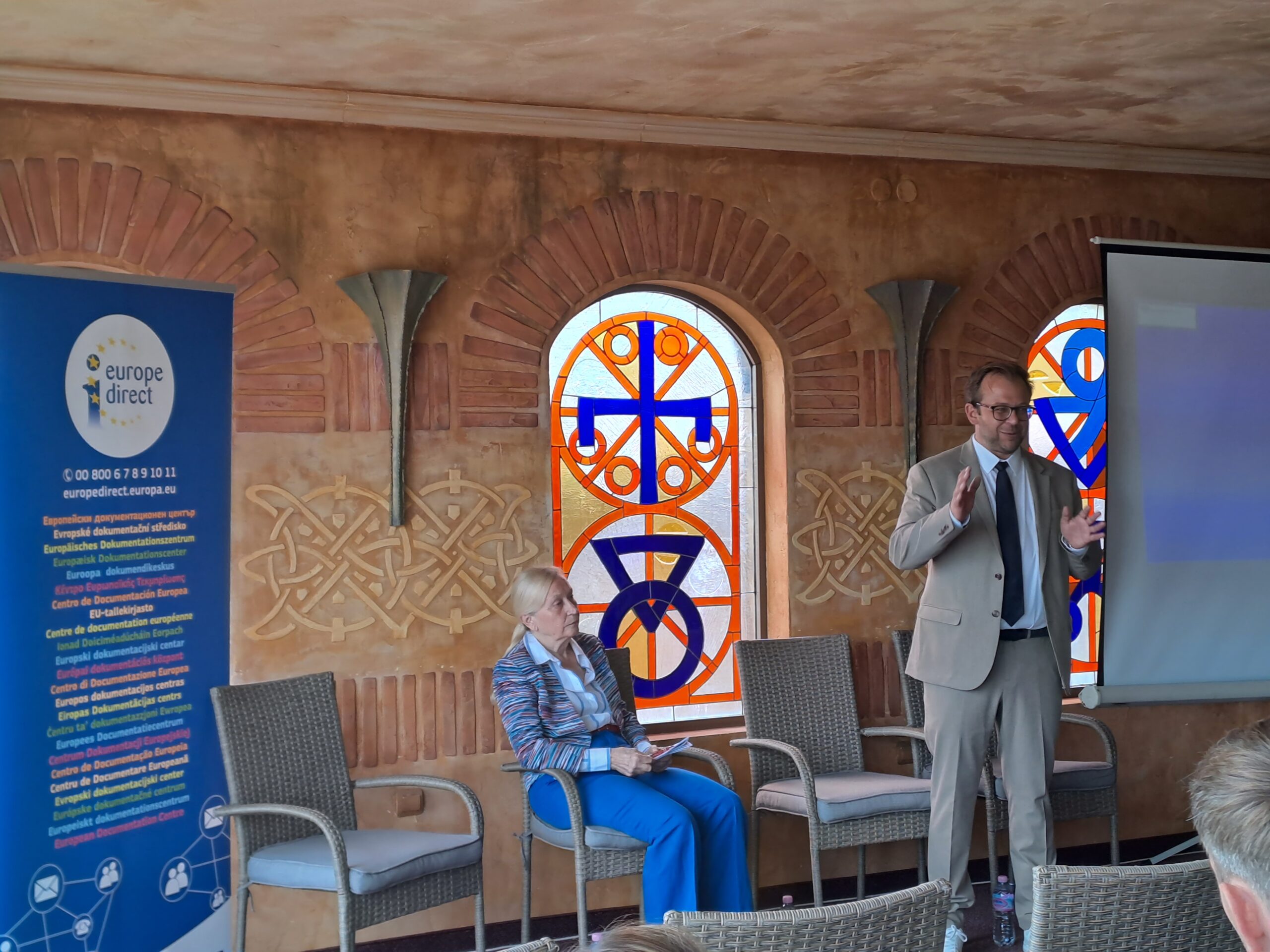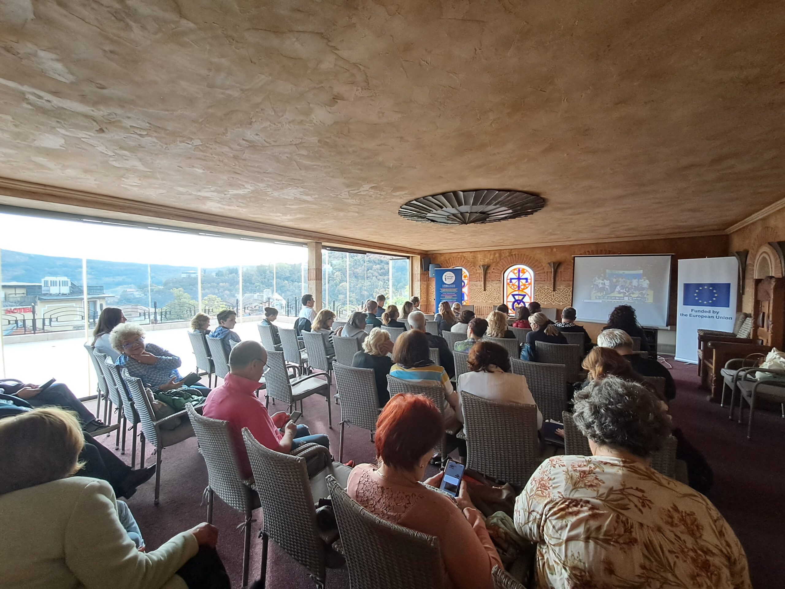 On 26th of October 2023, the international participants were joined by the domestic participants. Over 70 representatives of Bulgarian NGOs, the network of Europe Direct, EDC, educators, decision makers, young people, journalists from 14 different towns from the country, joined the official opening of the event. The president of the Board Dr Teodora Kaleynska opened the forum. Mrs Asya Rafaelova on behalf of the Altius Foundation (SP) greeted the participants and presented the project philosophy, goals and developments. She explained also the methodology of the project. Then the participants formed 5 small discussion groups on recent important topics of the EU policies – climate change, E-democracy, young and old people inclusion, equality in Europe, migration and security. The discussion groups were led by an international participant and by an EDIC representative. The groups discussed not only the problematic issues and expectations of the citizens from their regions but also they have drafted recommendations in the area of their thematic discussion. The groups presented their conclusions in the evening plenary.